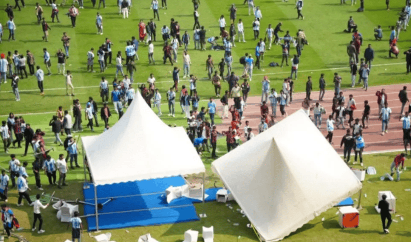 彻底失控!印度球迷暴怒!不满梅西只待10分钟,千人冲下看台砸场