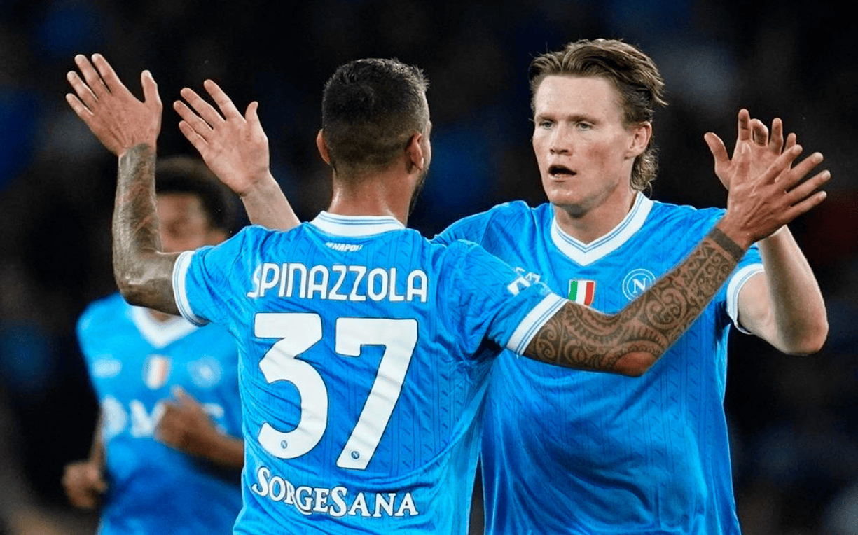那不勒斯排出4141阵型。内雷斯顶在最前面。波利塔诺、安古伊萨、德布劳内和麦克托米奈的进攻组合联袂出击。吉尔摩单后腰。迪洛伦佐、布翁焦尔诺、胡安-热苏斯和斯皮纳佐拉4后卫首发出战。瓦尼亚-米林科维奇-萨维奇担任首发门将。霍伊伦和卢卡库都因伤缺阵。